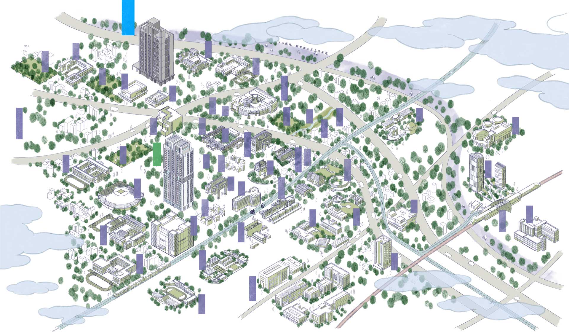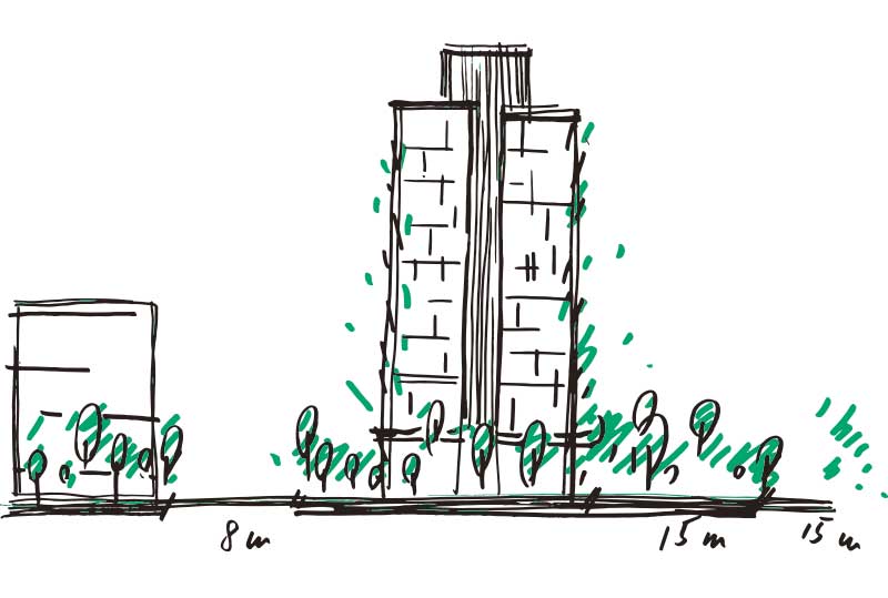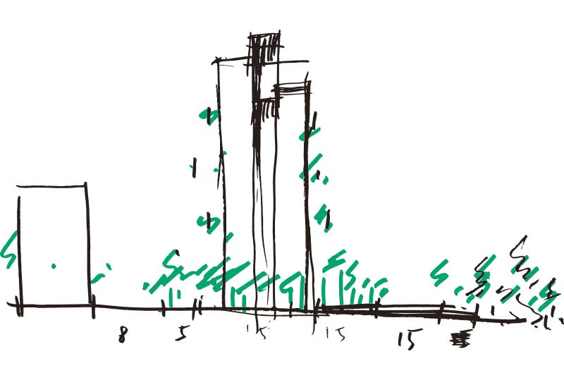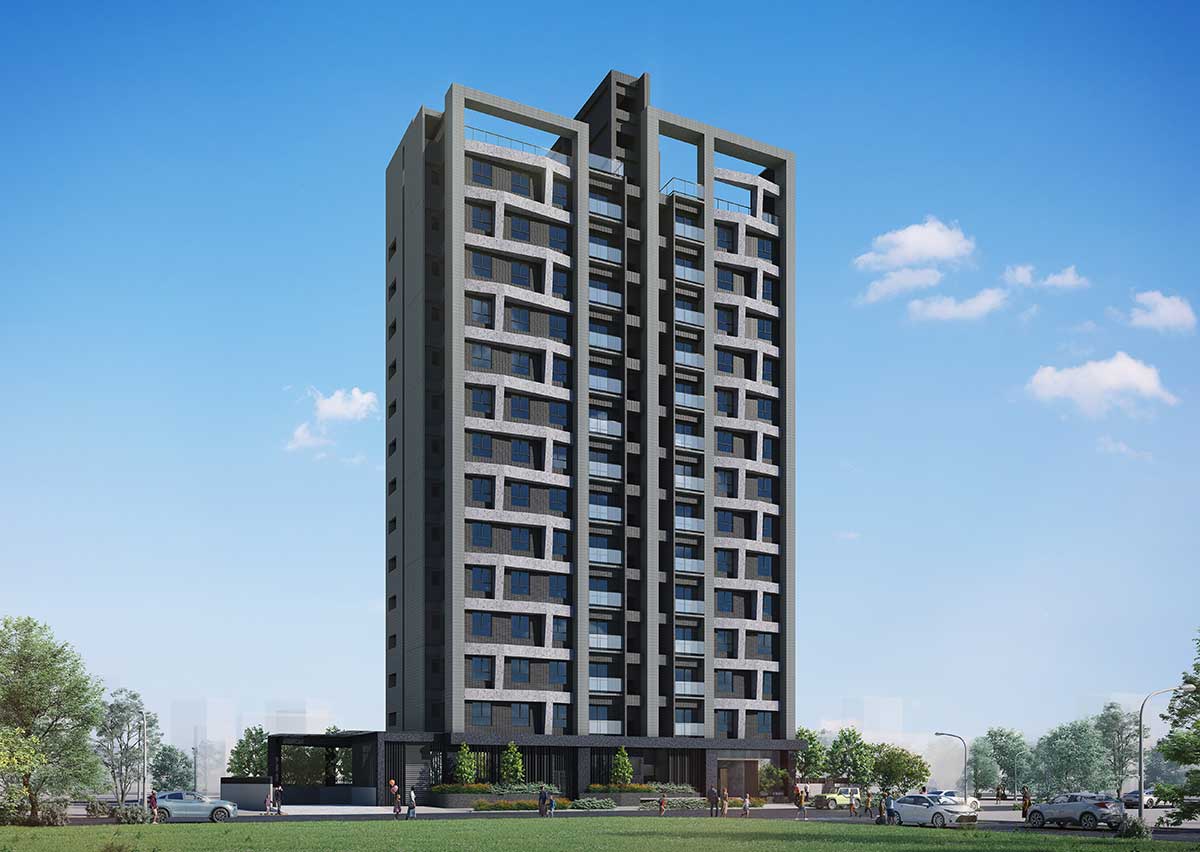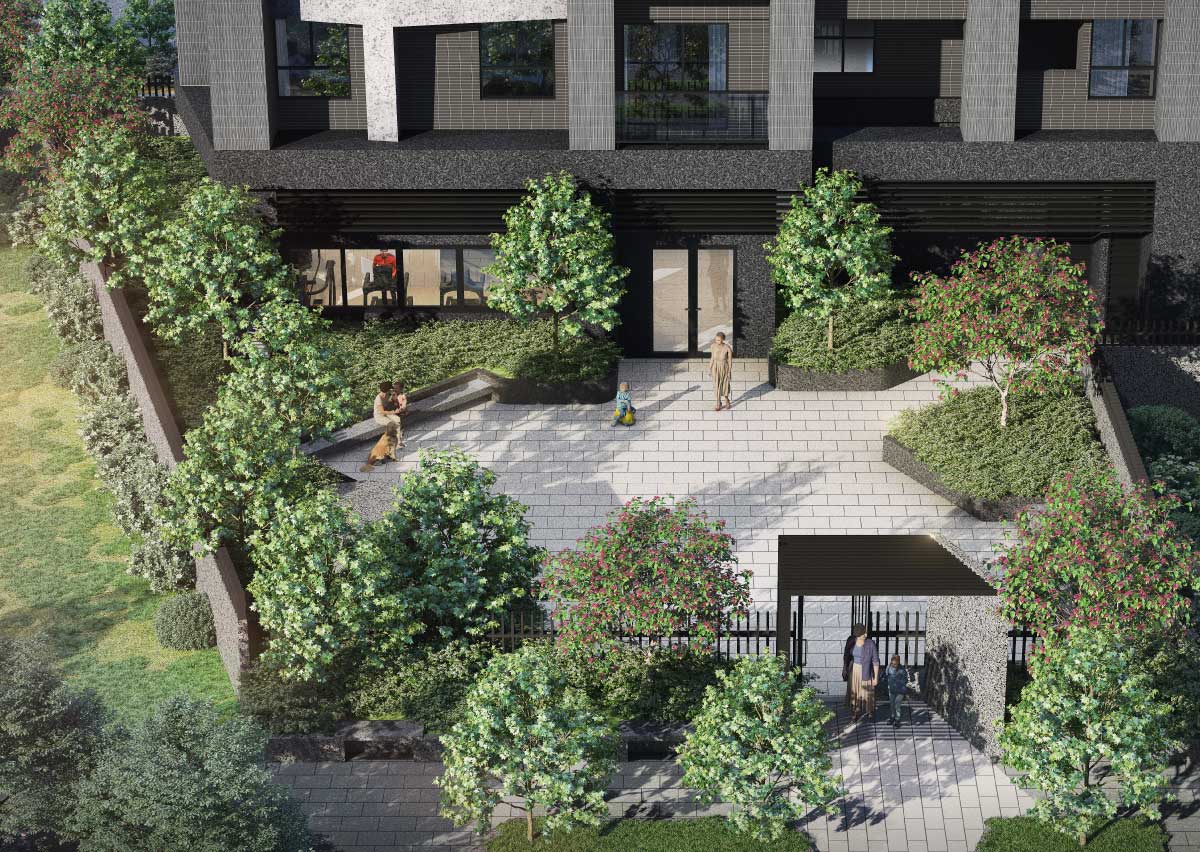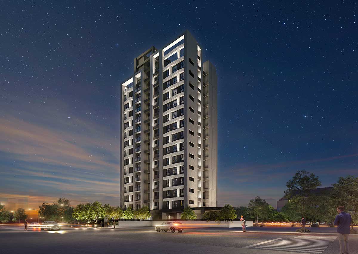第一次看到「昌傑玥玥」,基地在大樹成蔭的舊社國小旁,想創造出一棟可以跟校園對話的建築,三角形立面的建築外觀,在不同的光影下,因為錯層的關係,幻化出不一樣的表情。舊社國小側的步道,提供休憩空間,回家先進入中庭,被層層的綠源包圍,搭配景觀設計,轉換回家的心情。